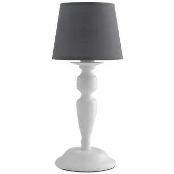 Abat-jour avec tige en métal blanc décoré et abat-jour en tissu gris. Lumen qui reflète sous toutes ses formes un design classique, capable de donner une touche élégante à n'importe quel décor. Ampoule halogène de 40 watts non incluse, douille E14. Découvrez toute la ligne Favola, Cliquez ici.