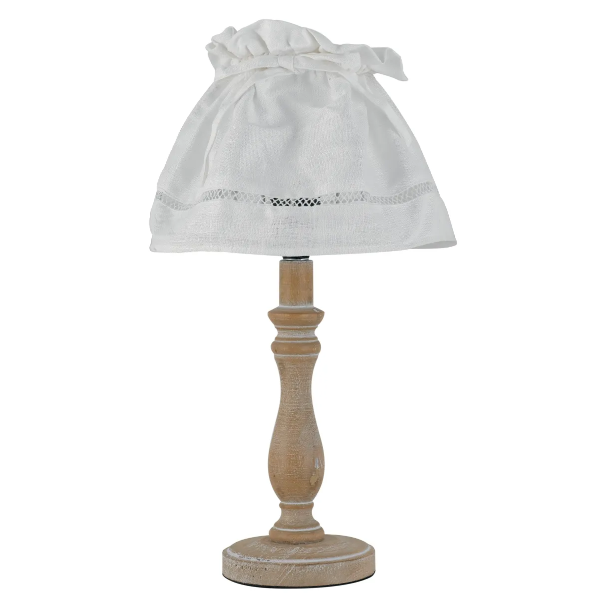 Abatjour pour table de chevet 34 cm de haut et 18 cm de large, avec structure en bois et abat-jour en tissu blanc, avec une lumière. Ampoule halogène E14 de 40 watts non incluse. Lampe de table Lampe de table Mesure en cm HxL 34x18. Ampoules incluses oui / non: Non. Il peut transporter 1 ampoule E14 de 40 watts maximum. Couleur blanche. Deuxième couleur: bois.