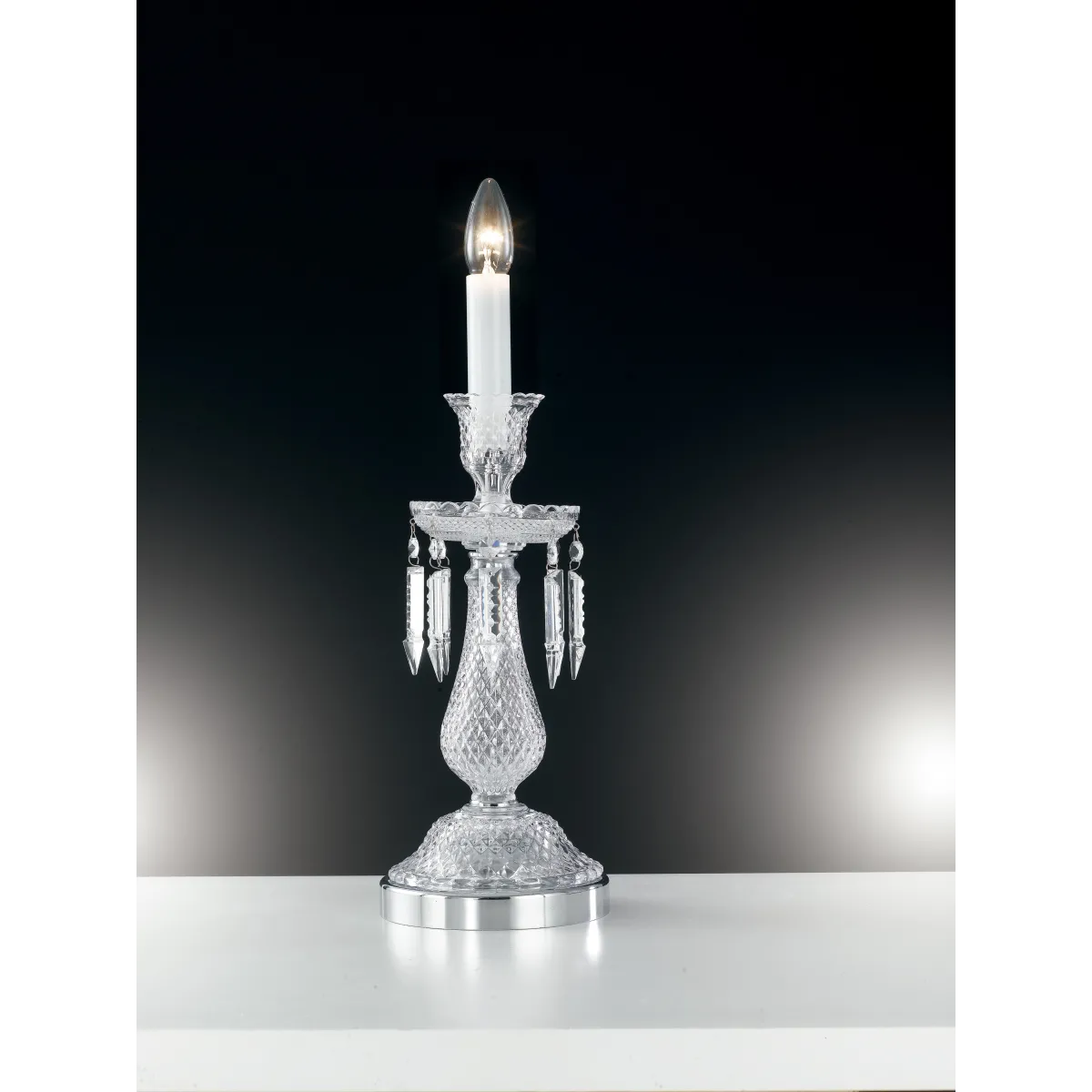 Lampe de Table Classique Cristal Décorée Finitions Chrome Intérieur E14