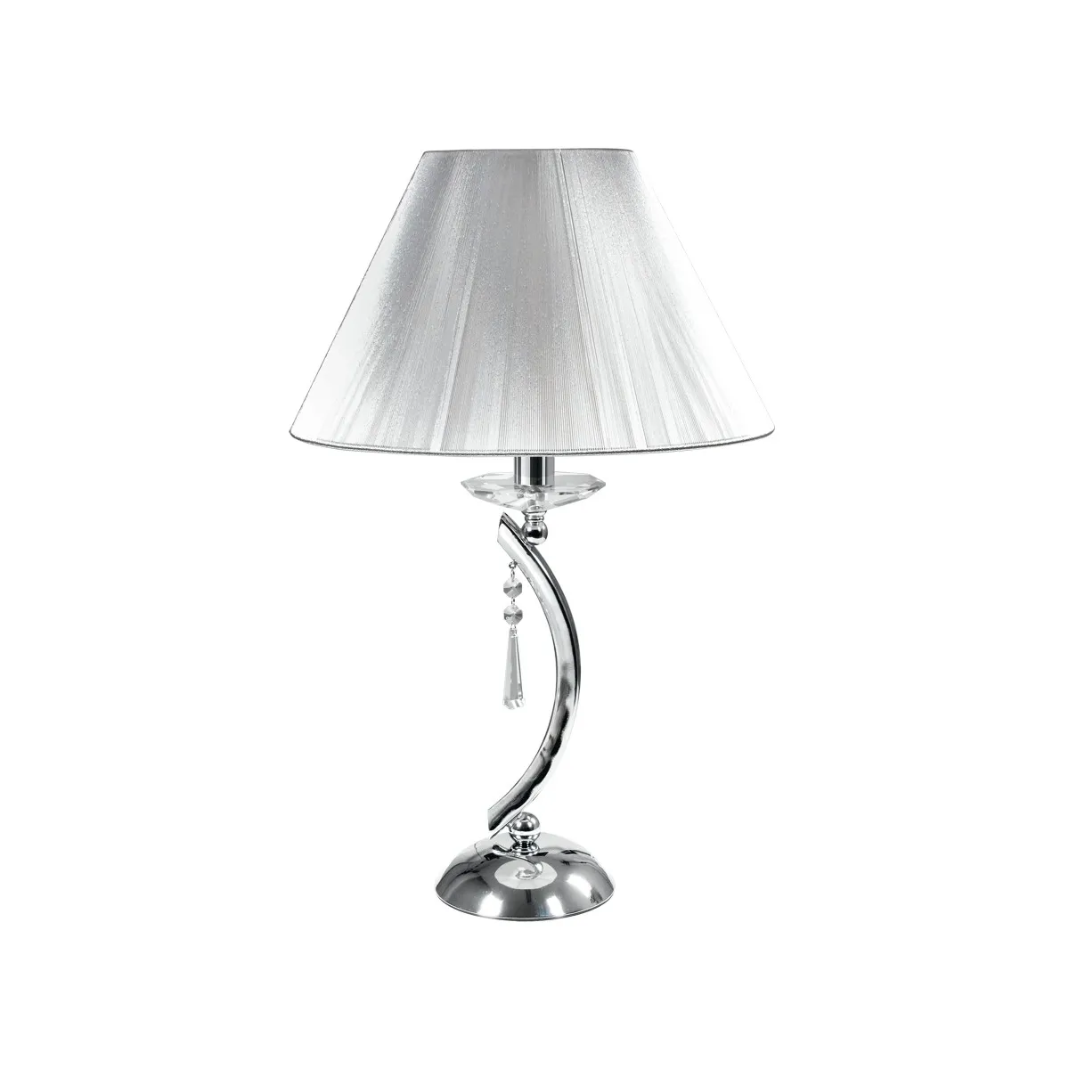 Lampe de table en métal chromé, cristaux K9 et abat-jour en tissu, diamètre 35 cm, avec une lumière. Peut être installé sur une table de chevet. Ampoule halogène 60 watts, douille E27, non incluse. Également disponible avec un diamètre de 15 cm. Lampe de table Lampe de table Mesure en cm HxL 53.5x35. Ampoules incluses oui / non: Non. Il peut transporter 1 ampoule E27 de 40 watts maximum. Couleur: Chrome. Deuxième couleur: blanc.