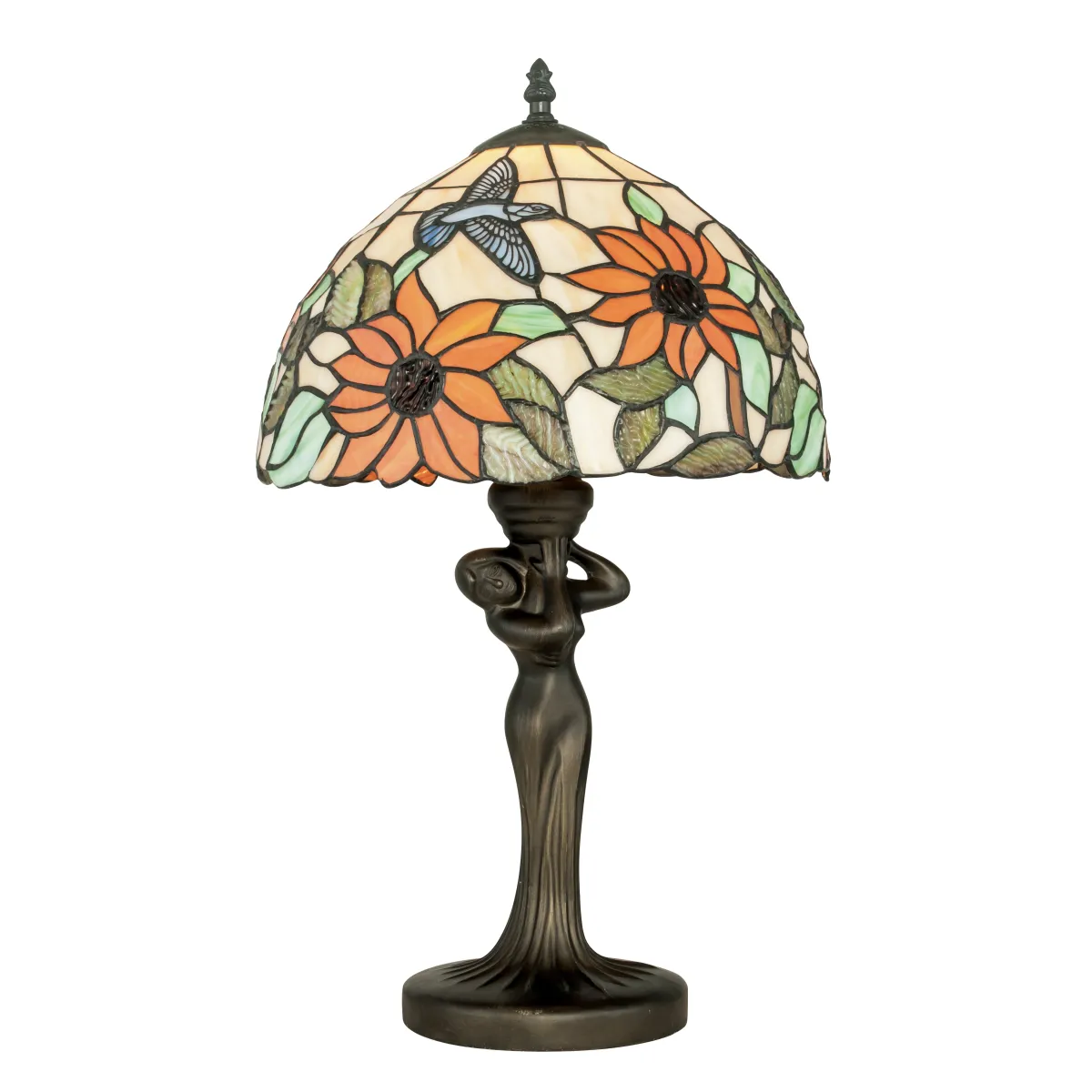 Lampe de table classique à fleurs en verre coloré en métal E27