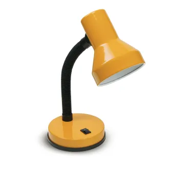 Lampe de lecture de bureau avec une lampe halogène E27 de 60 watts, non incluse. Arbre pliable en plastique noir, abat-jour et base en métal jaune et interrupteur d'alimentation. Également disponible en orange, blanc, noir et argent. Lampe de table Lampe de table Mesure en cm HxL 34.5x14.5. Ampoules incluses oui / non: Non. Elle peut transporter 1 ampoule E27 de 40 watts maximum. Couleur jaune.