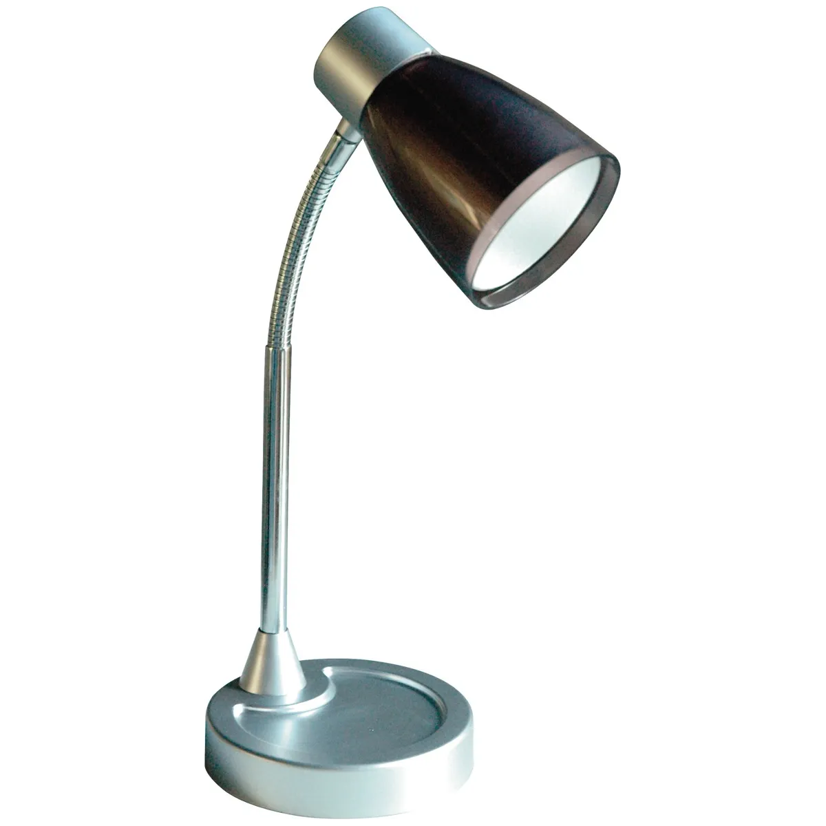 Lampe de en train de lire orientable avec structure en métal et abat-jour en plastique noir. Lumen idéal pour...