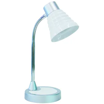 Lampe de lecture avec abat-jour en plastique blanc et structure métallique réglable, avec une lumière. Idéal pour éclairer les bureaux. Ampoule halogène 40 watts non incluse, douille E14. Également disponible en orange, noir et violet. Lampe de table Lampe de table Mesure en cm HxL 39x13. Ampoules incluses oui / non: Non. Elle peut transporter 1 ampoule E14 de 40 watts maximum. Couleur blanche.