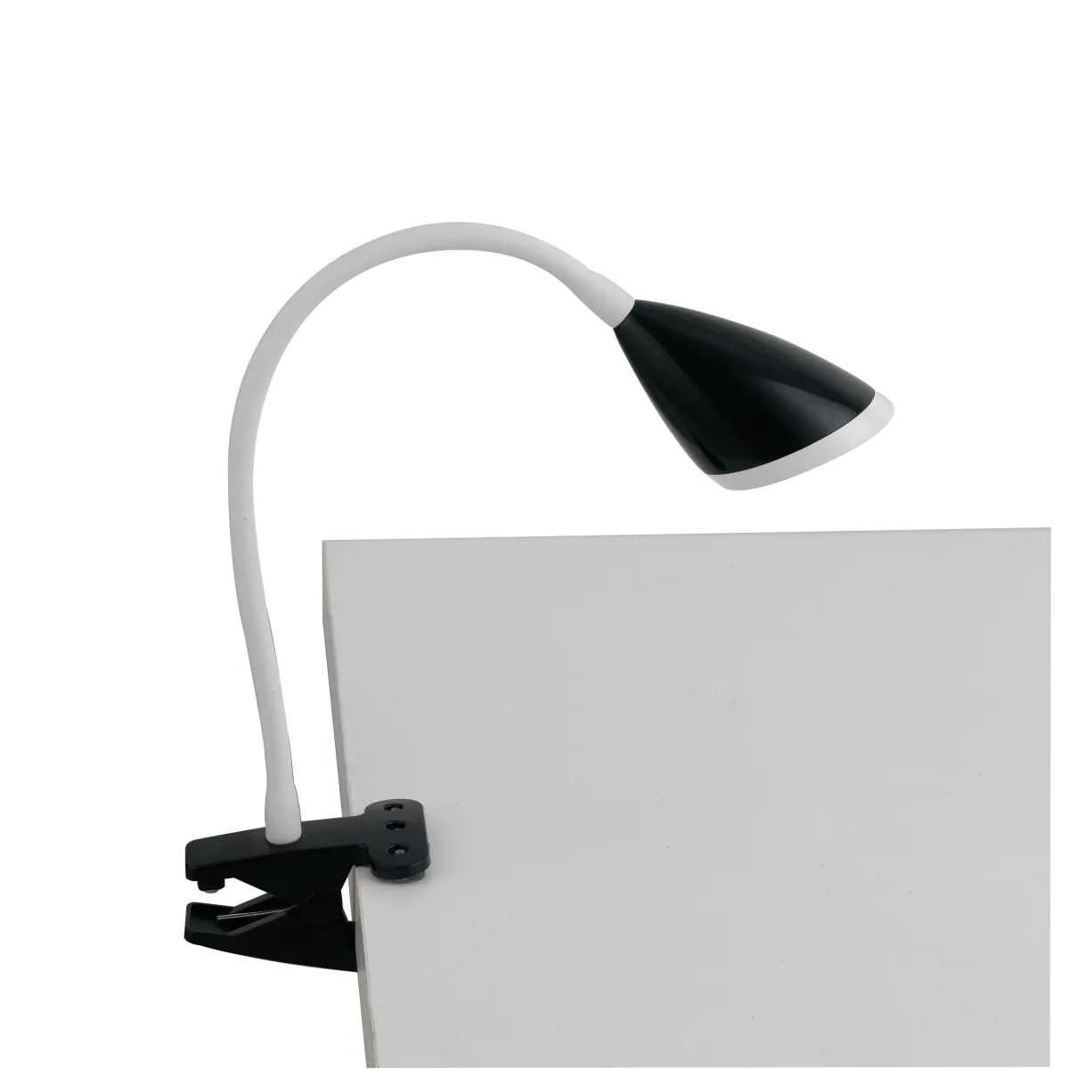 Lampe de table flexible avec abat-jour en métal noir en silicone à pince, lumière naturelle de 3,2 watts