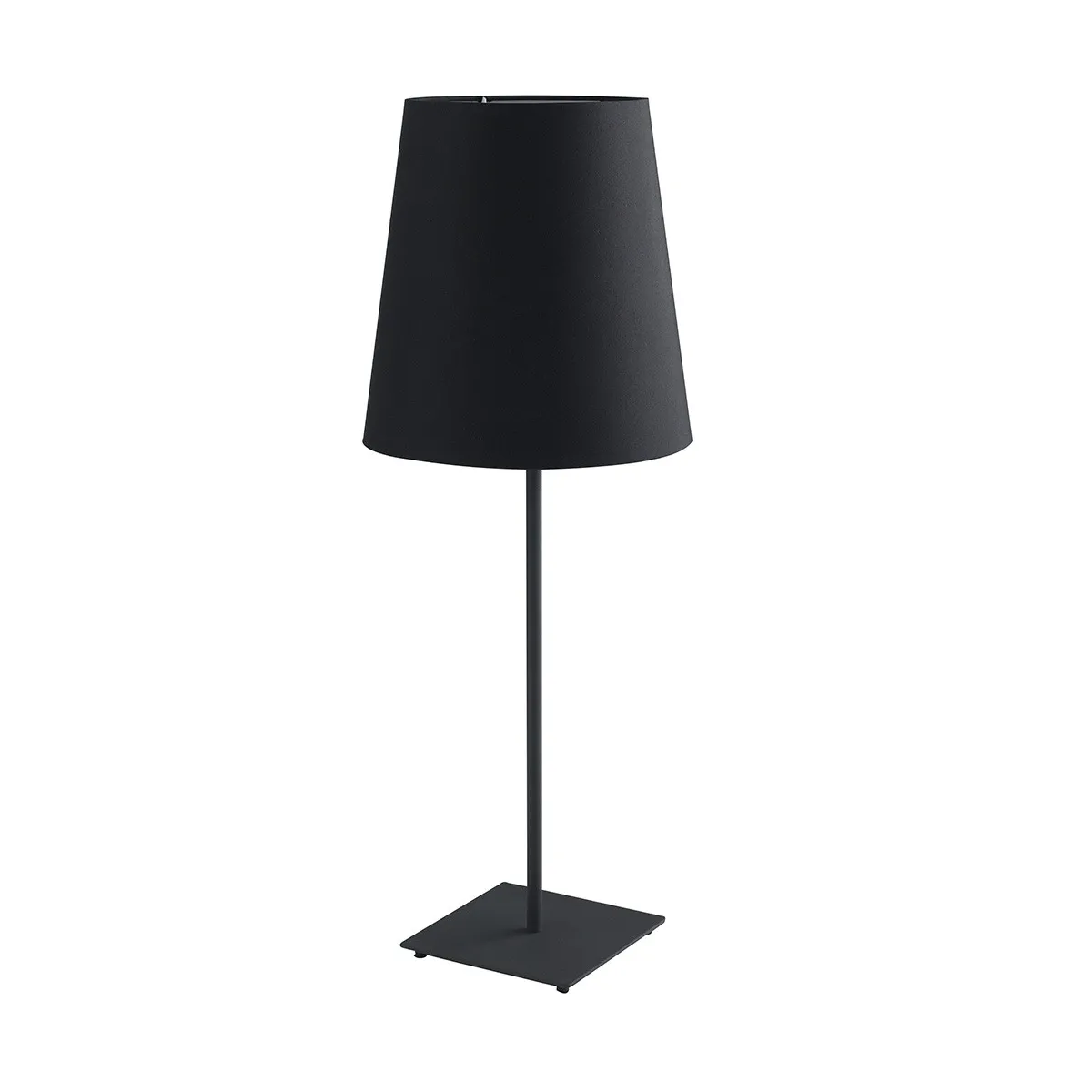 Lampe de table ou table de chevet noir avec structure en métal et abat-jour en tissu. Lumen Elvis qui...