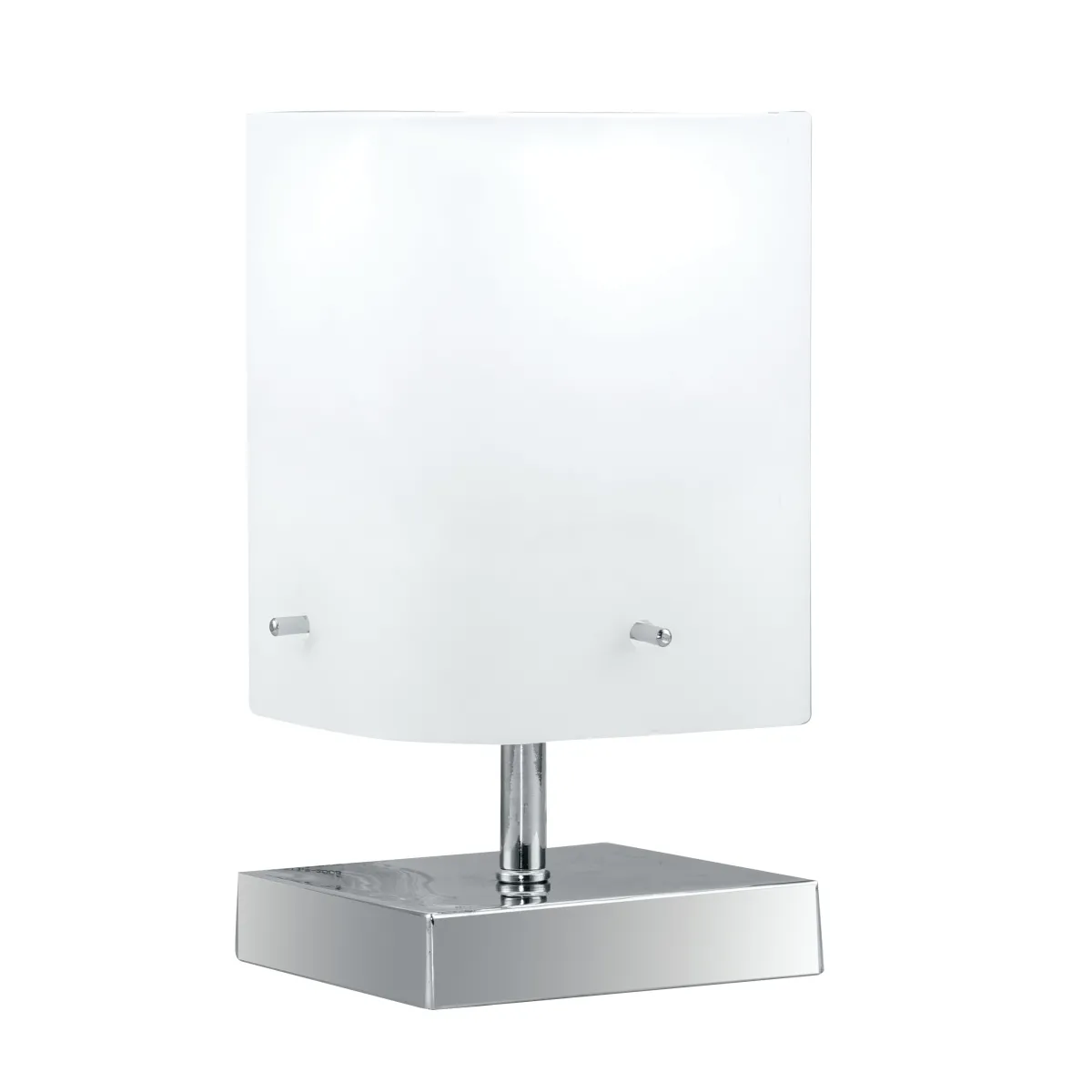 Lampe de chevet avec structure chromée et abat-jour carré en verre blanc, avec une lumière. Ampoule halogène 60 watts non incluse, douille E27. Lampe de table Lampe de table Mesure en cm HxL 29x12. Ampoules incluses oui / non: Non. Il peut transporter 1 ampoule E27 de 60 watts maximum. Couleur: Chrome. Deuxième couleur: blanc.