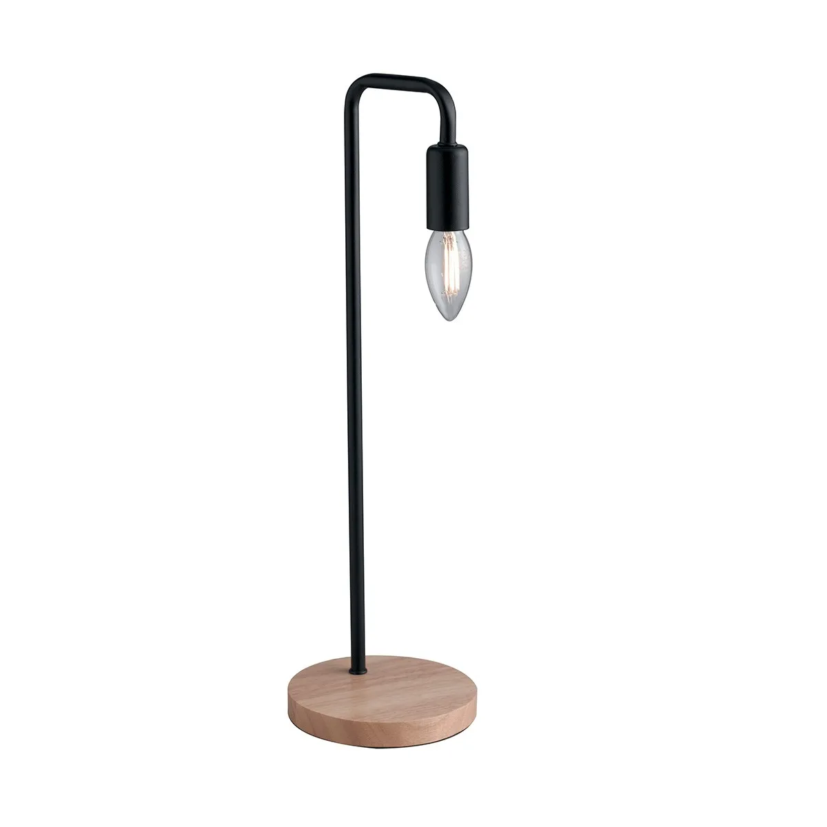 Lampe moderne Base en métal noir Lampe de bureau moderne en bois naturel E14