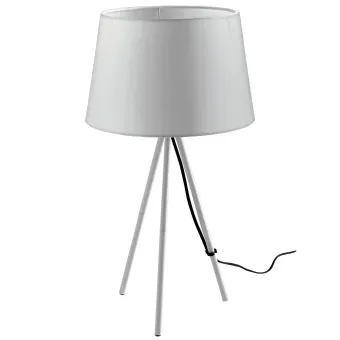 Lampe de table trépied abat-jour en tissu métal blanc intérieur moderne E27