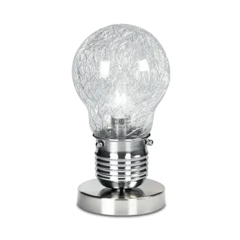 Lampe de table en métal chromé avec diffuseur en forme d'ampoule en verre transparent et décoration intérieure en fils d'aluminium entrelacés. Lampe de table Ampoule moderne et original, idéal pour les adultes et les enfants. Ampoule halogène de 40 watts non incluse, douille E14. Découvrez toute la gamme Bulb, cliquez ici.