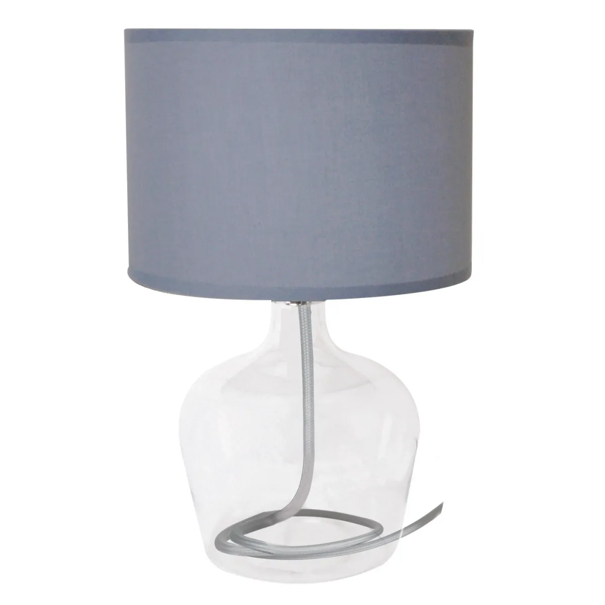 Abat-jour Abat-jour Tige en tissu gris Lampe de table en verre transparent E27