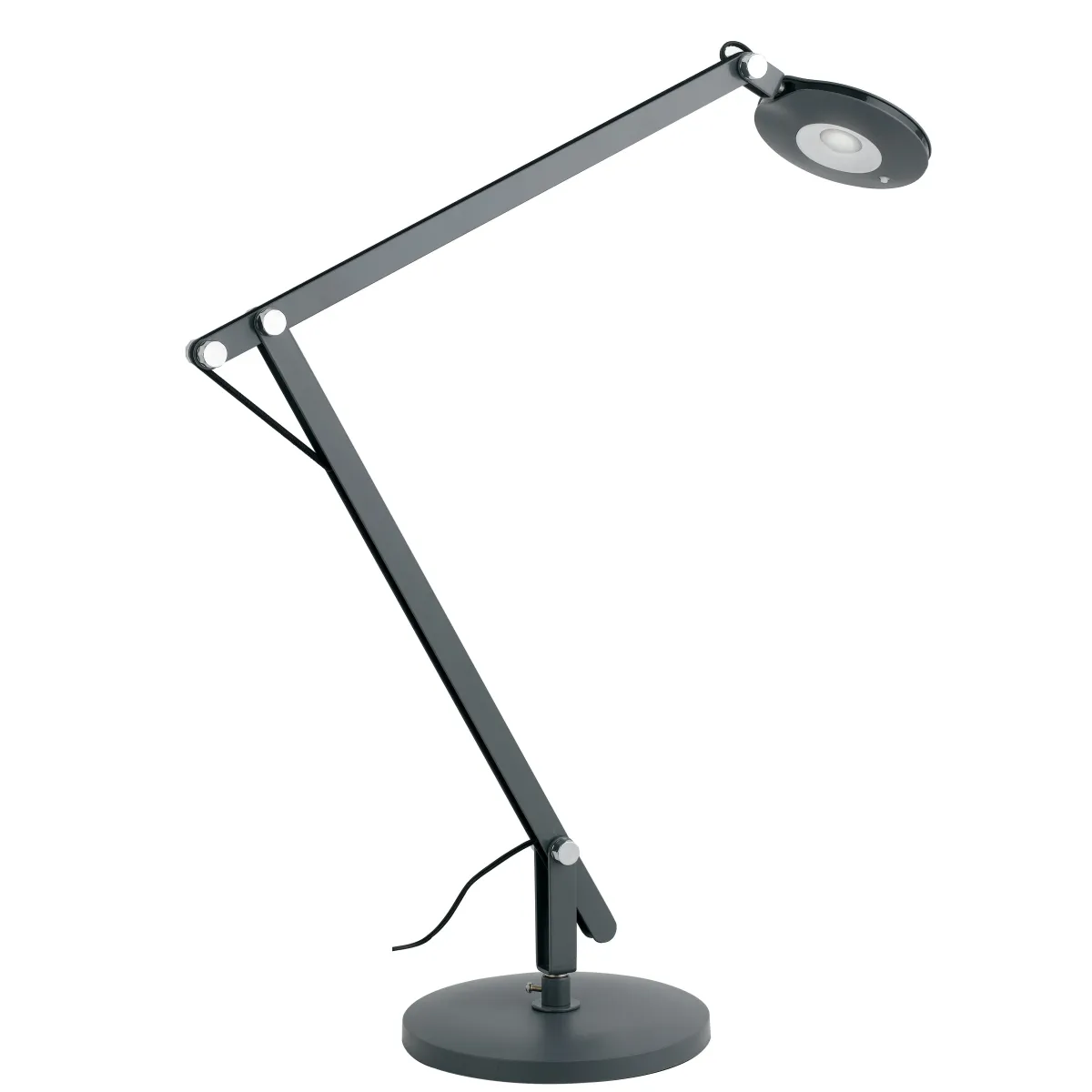 Lampe de en train de lire métal gris et plastique avec cordon d'alimentation noir. Lumen avec structure...
