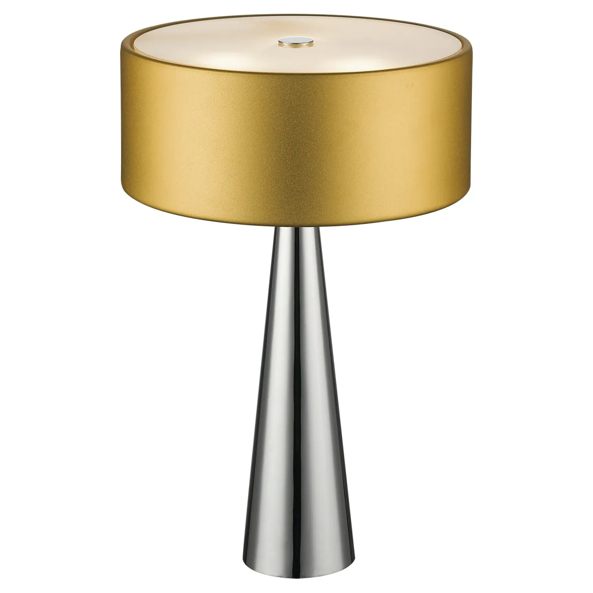 Lumen avec tige conique en métal, abat-jour en aluminium doré et diffuseur en verre. Lampe de table Heminguay...
