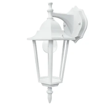 Lanterne d'applique à une lumière, hauteur 37 cm et largeur 21 cm, avec diffuseur en verre et structure en aluminium moulé sous pression blanc. Lampe halogène de 40 watts, douille E27, non incluse. Également disponible en couleur anthracite.