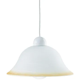 Lustreclassique avec Suspension à fil, la taille Ajustableet abat-jour en verre blanc. La décoration ambrée sur le bord de l'abat-jour donne une touche de couleur à l'environnement. Ligne XVIIIe siècle idéal pour décorer les chambres d'enfants et d'adolescents. Une ampoule non halogène je