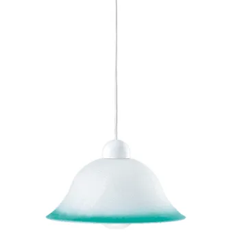 Lampe à suspension en verre blanc avec bord ombré vert, avec une lumière, 31 cm de diamètre. Ampoule halogène 60 watts, douille E27, non incluse. Également disponible en blanc, ambre, rose et bleu. Lampe à suspension avec 1 douille E27 de 60 W. Peut être installée au plafond. Mesure en cm HxL 120x31. Ampoules incluses oui / non: Non. Compatible avec les ampoules LED ou halogènes. Couleur verte.