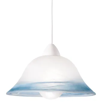 Lustre classique avec Suspension à fil , la taille Ajustable et abat-jour en verre blanc. La décoration bleue...