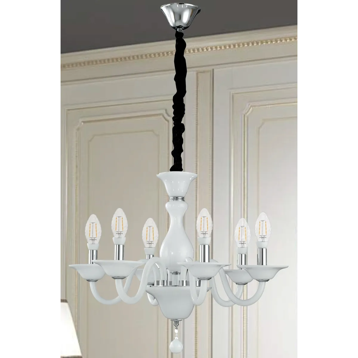 Lustre à suspension classique en pâte de verre blanche Finitions chromées E14