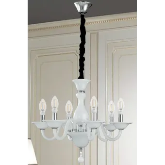 Lustre en pâte de verre avec finitions chromées et décoration sphérique. Suspension chaîne qui offre une bonne diffusion de la lumière et en même temps fournit. Là ligne Coup des offres les lampes classique avec une structure légère et élégante. 6 lampes halogènes non incluses de 40 watts, douille E14. Voir aussi en version a 8 lumières. Découvrez toute la ligne Soffio, cliquez ici.