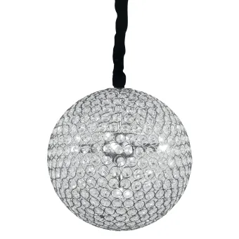 Lustre suspendu à décor rond en cristal K9, forme sphérique, diamètre 35 cm, en métal, à 6 lumières. Ampoules halogènes de 28 watts chacune, douille G9, incluses. Également disponible dans la version à 9 lumières. Suspension halogène avec 6 ampoules G9 de 28 W. Peut être installée au plafond. Mesure en cm HxL 120x35. Ampoules incluses oui / non: Oui à partir de 3500 Kelvin. Couleur: cristal. Deuxième couleur: Chrome.
