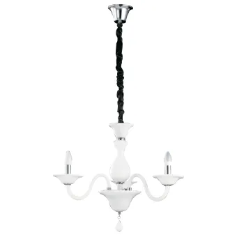 Lustre suspendu en pâte de verre blanc avec 3 lumières. Ampoules halogènes de 40 watts chacune, douille E14, non incluses. Lampe à suspension avec 3 attaques de 40 watts E14. Peut être installée au plafond. Mesure en cm HxL 105x65. Ampoules incluses oui / non: Non. Compatible avec les ampoules LED ou halogènes. Couleur: Chrome. Deuxième couleur: blanc.