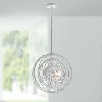 Suspension à fil en métal blanc, hauteur réglable, à décor d'anneaux concentriques. Lustre avec une ligne simple et une décoration originale qui projette des jeux d'ombres et de lumière dans l'environnement. Ligne Club de Design moderne. Ampoule halogène 60 watts non incluse, douille E27. Voir aussi en couleur chromé. Découvrez toute la gamme Club, cliquez ici.