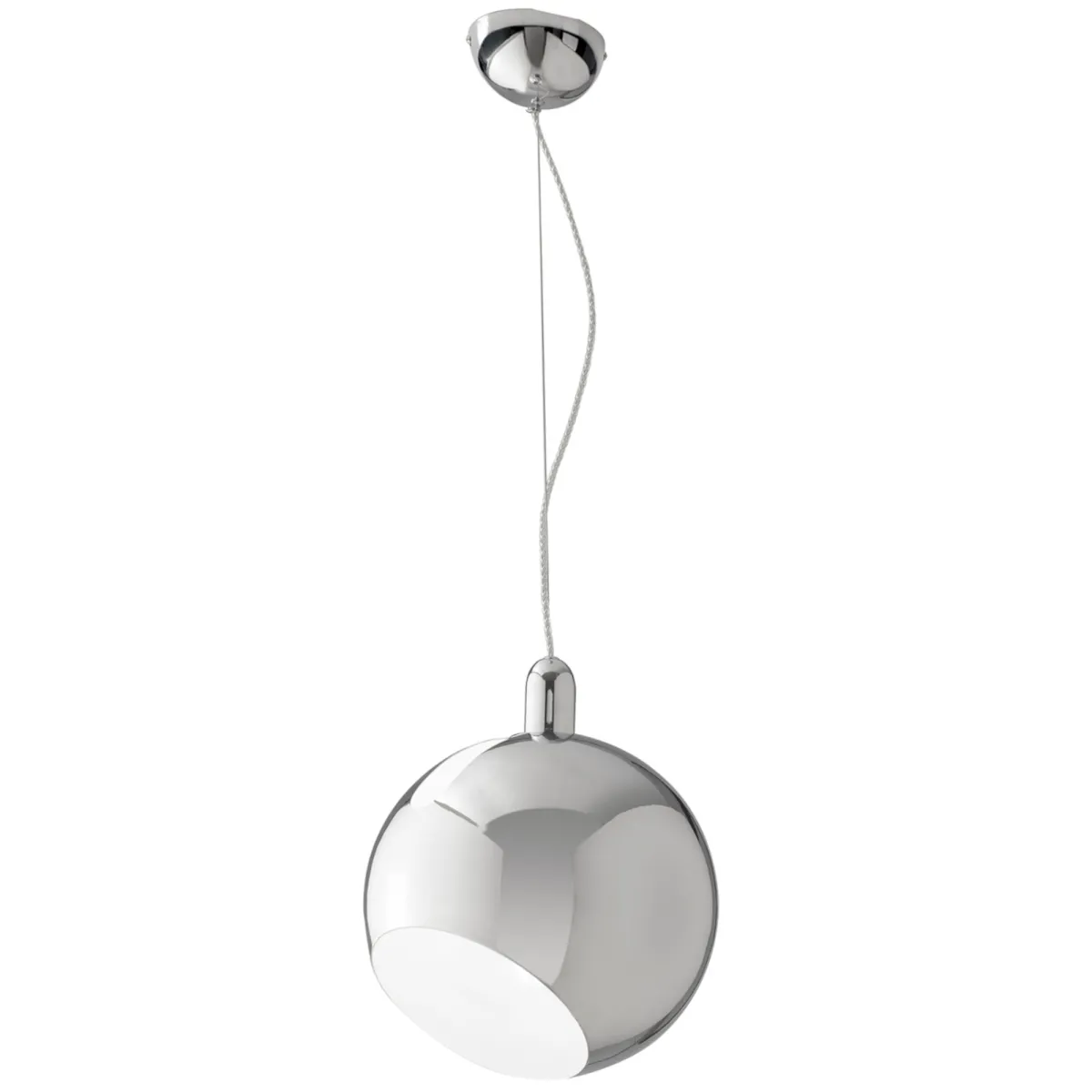 Lustre, réglable en hauteur, avec abat-jour sphérique orientable en métal, extérieur chromé et intérieur blanc. Suspension moderne que vous pouvez diriger où vous préférez; dans toutes les positions, il offre un éclairage parfait. Ampoule halogène 60 watts non incluse, douille E27. Découvrez toute la gamme Narciso, Cliquez ici.