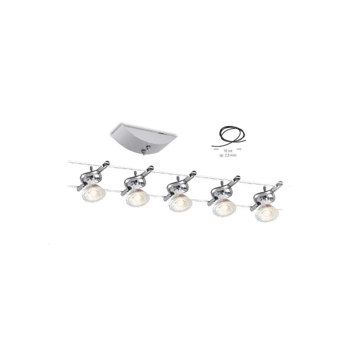 Système de câble Tesi Metro Chrome 5Xmr16 Led Max 9W avec câble 2,5X10MtLED-METRO-5 Suspension Chrome Compatible led et halogène