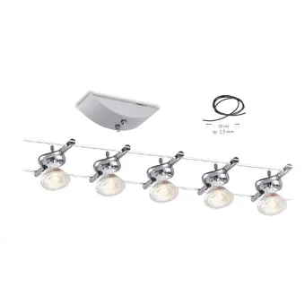 Système de câble Tesi Metro Chrome 5Xmr16 Led Max 9W avec câble 2,5X10MtLED-METRO-5 Suspension Chrome Compatible led...