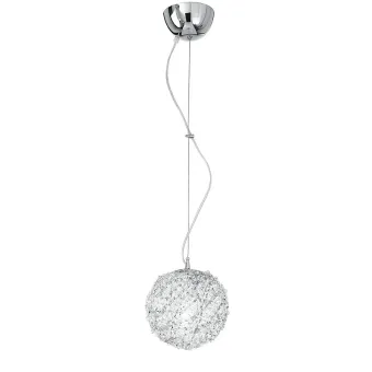 Pendentif à fil avec la taille Ajustable, abat-jour sphérique, diamètre 20 cm, décoré de fils d'aluminium entrelacés et de cristaux. Suspension Astra moderne ce qui donne de la luminosité à l'environnement. Ampoule halogène 60 watts non incluse, douille E27. Voir aussi avec diamètre 35 cm est 45 cm. Découvrez toute la gamme Astra, cliquez ici.