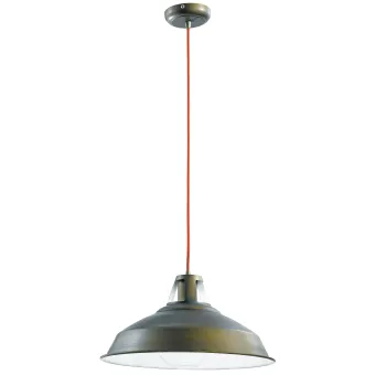 Pendentif en fil à réglable en hauteur, rouge avec abat-jour en métal couleur bronze. Suspension qui reflète pleinement le style rustique. Ligne Bogota idéal pour éclairer les restaurants et les clubs vintage. Ampoule halogène 40 watts non incluse, douille E27.