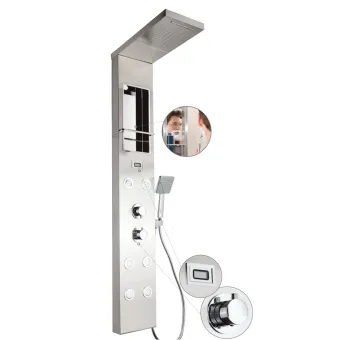 4 funzioni selezionabili: soffione, getto effetto cascata, doccetta e getti orizzontali “massage” superiori e...