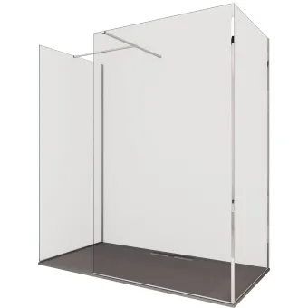Une cabine de douche en libre accès composée de trois murs fixes de plain-pied. Raffinée et élégante, l'utilisation de murs walk-in convient à ceux qui aiment une salle de bain design. Murs de plain-pied en verre anti-calcaire de 8 mm. Équipé d'une élégante tige en aluminium sous verre qui rendra l'espace de douche unique en apparence. Système de fixation Ghost sans vis apparentes. Bras en aluminium chromé de 120 cm pouvant être découpé et adapté à votre situation.