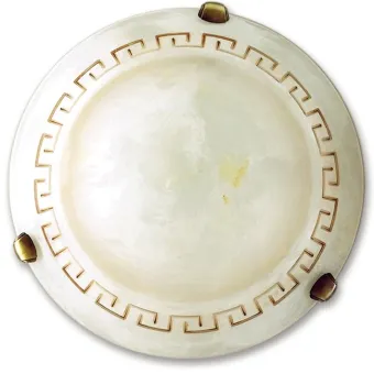 Plafonnier rond, diamètre 30 cm, en verre de marbre ambré à décor grec grec. Lampe de mur ou plafond Trois...