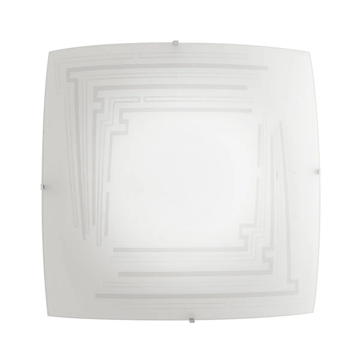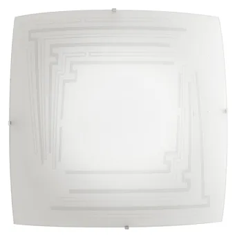 Plafonnier carré, 40x40 cm, en verre blanc à décor gris et pailleté. Lampe moderne installable a mur ou...