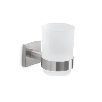 Porte-brosse à dents brossé Fuji. Fabriqué en cromall, acier inoxydable AISI 304 et verre satiné. Dimensions : h 9,5...