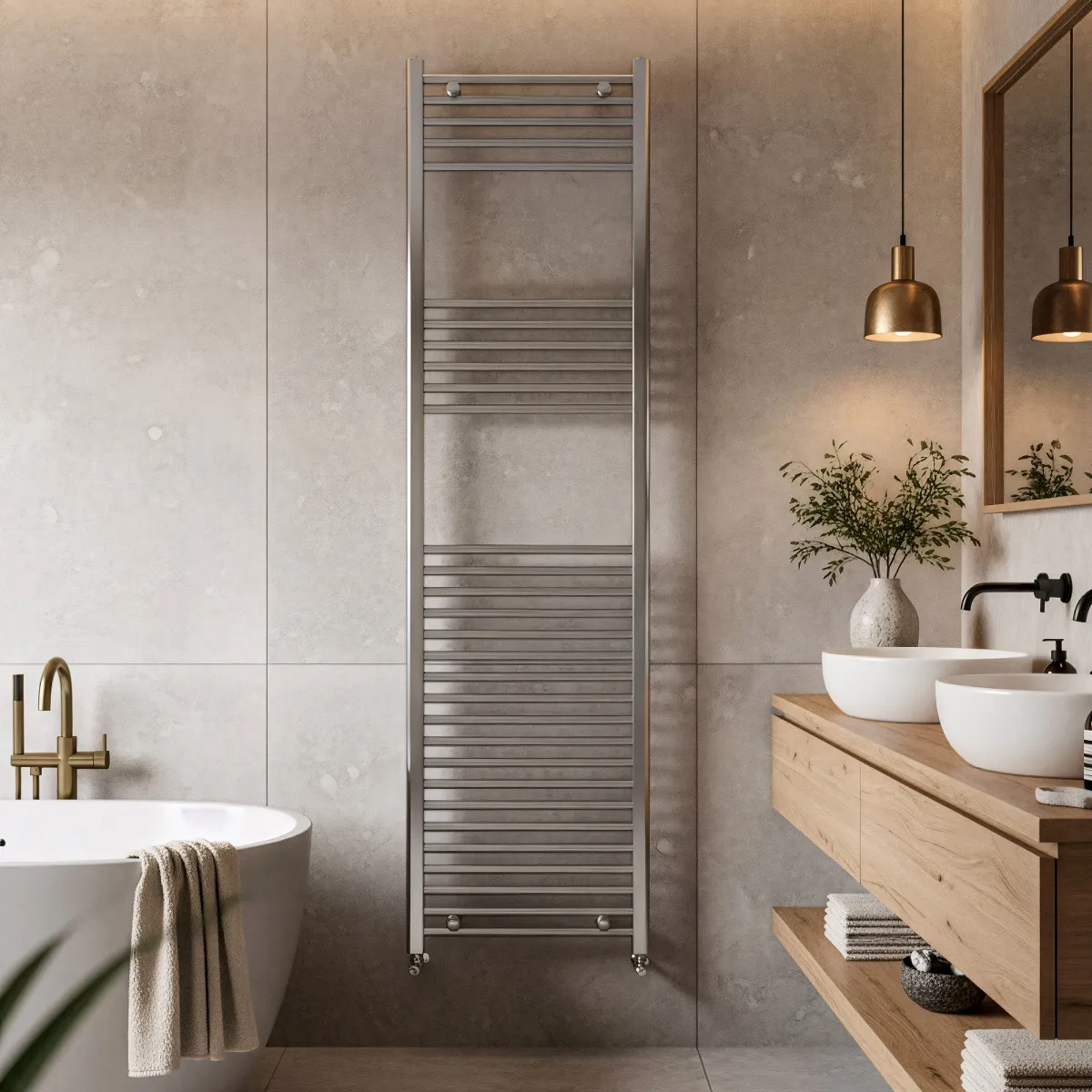 Radiateur sèche-serviettes 1800x500 chromé, entraxe 450 mm, tubes droits