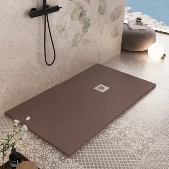 Receveur de douche en résine de marbre effet pierre ciment Marron PLUS