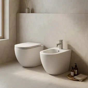 Toilettes et bidet suspendus sans bride Nemesi