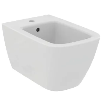 Bidet suspendu monotrou avec fixations invisibles. Il est possible d'installer des robinets à levier unique et à double levier. Pour le montage mural, il est nécessaire d'utiliser le kit de fixation inclus dans l'emballage et le support métallique, à acheter séparément
