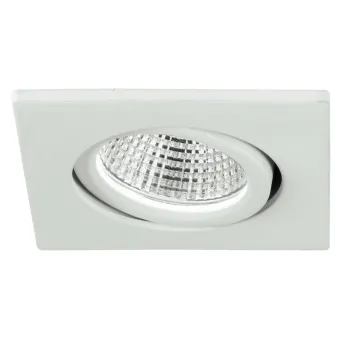 Spot encastré carré, mesurant 6,2x6,2 cm, en aluminium blanc avec réflecteur prismatique chromé. Structure...
