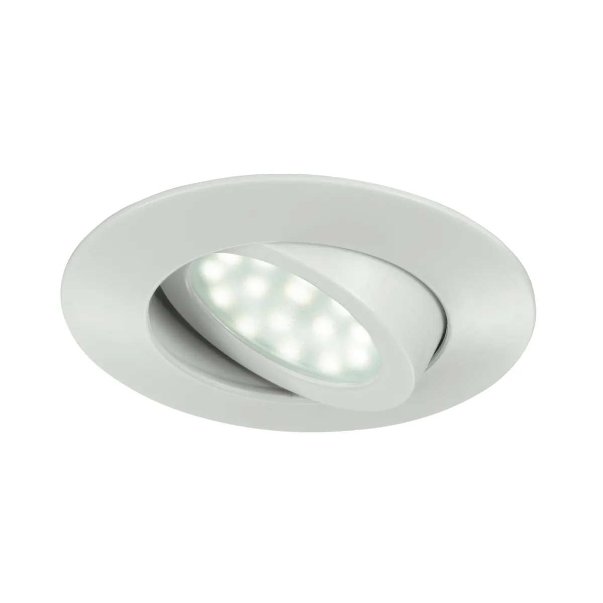 Spot encastré rond, 9 cm de diamètre, en polycarbonate blanc. Structure orientable jusqu'à 25 ° . Chauffeur...