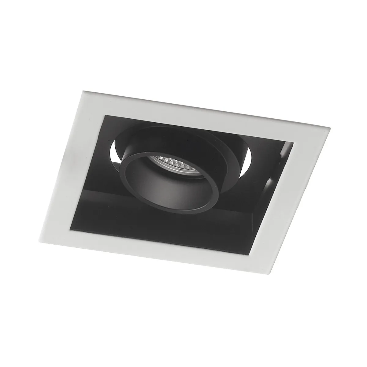 Spot encastré carré, 15x15 cm, avec bordure blanche et intérieur noir satiné. Structure orientable dans quatre...