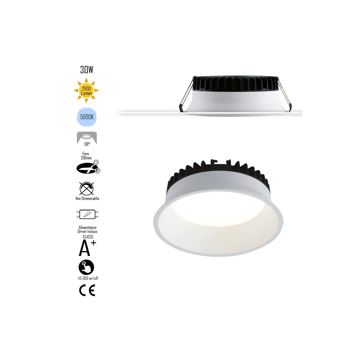 Lampe encastrable ronde XANTO en aluminium moulé sous pression blanc avec LED SMD intégrée 5000K- 2900Lm30W