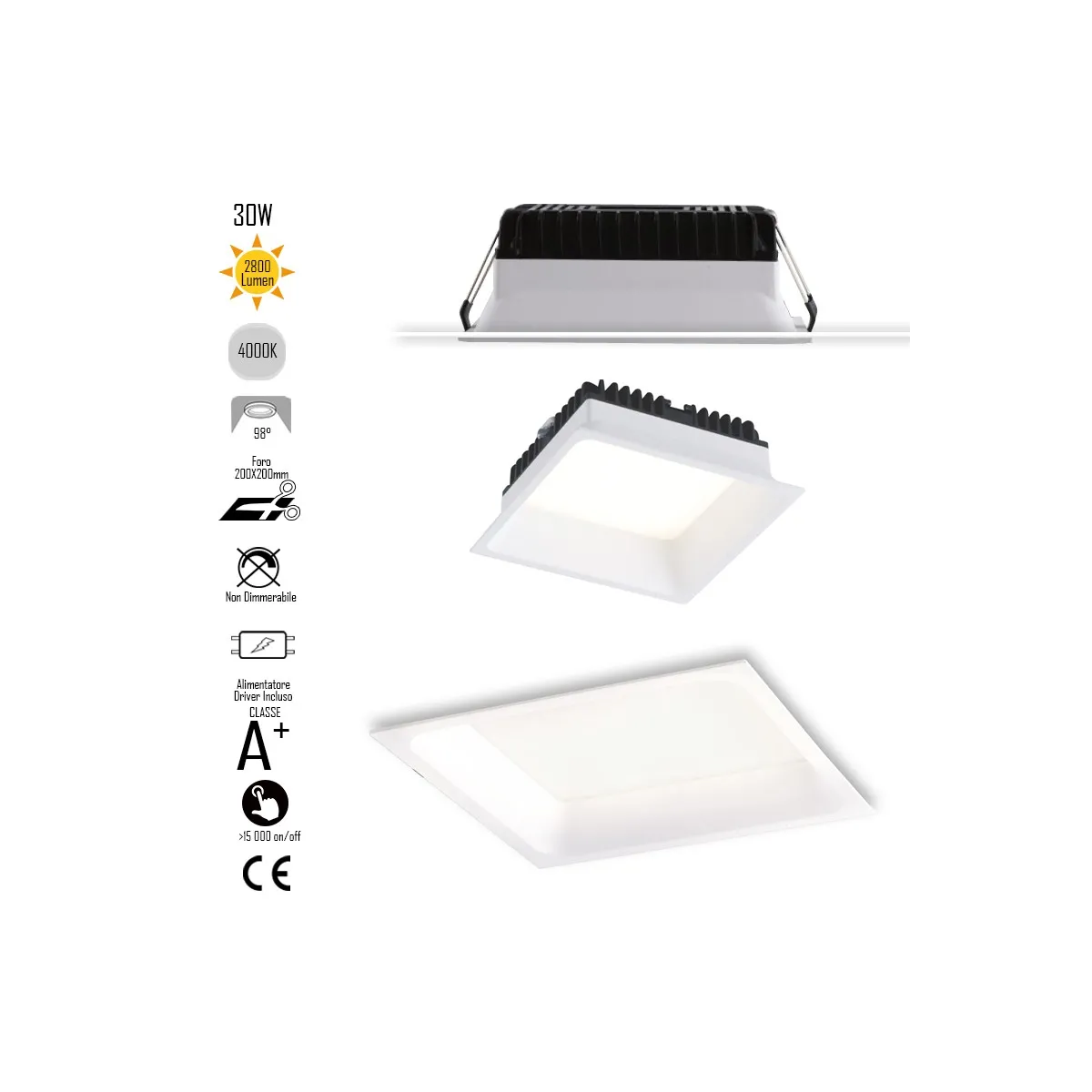 Plafonnier encastrable Faro quadro avec LED intégrée, double isolation, installation au plafond ou au mur.Non dimmable.Driver inclus.