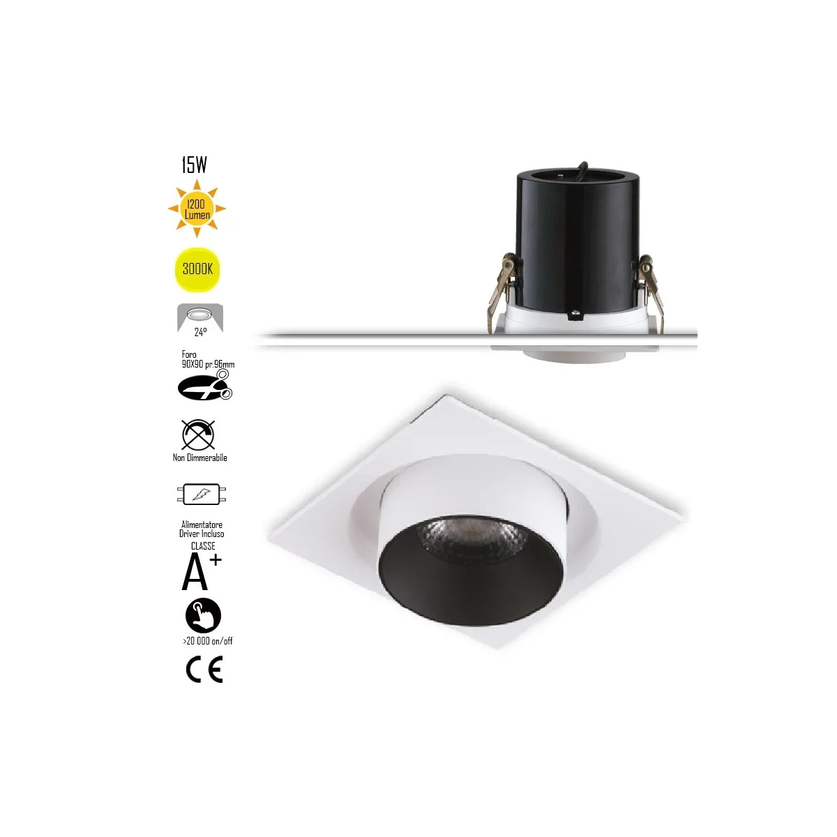 Encastré Outsider Amovible Et Réglable Led 1X15W 1200Lm 3000K 24 Driver Inclus INC-OUTSIDER-1X15C Spot encastré Blanc