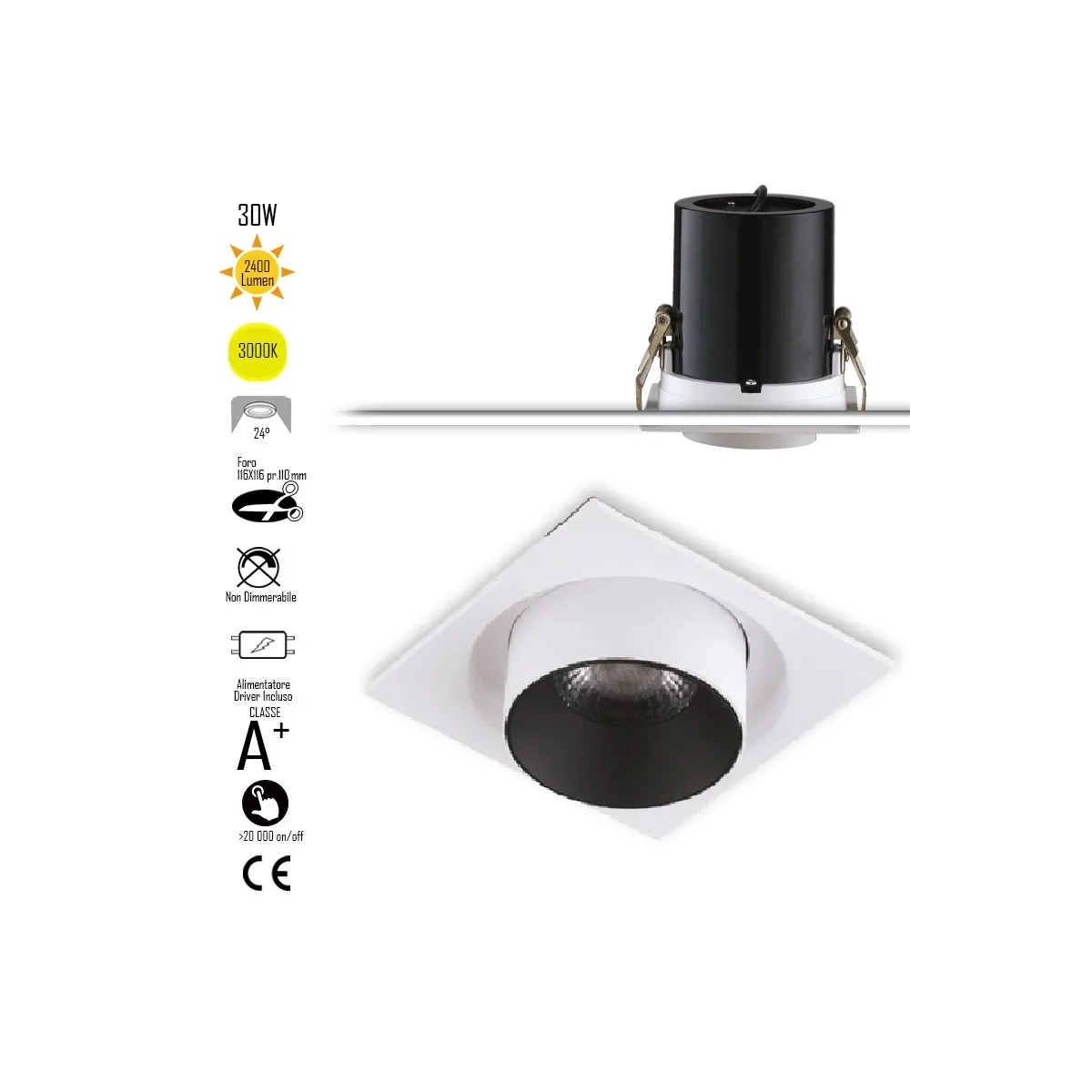 Encastré Outsider Amovible Et Réglable Led 1X30W 2400Lm 3000K 24 Driver Inclus INC-OUTSIDER-1X30C Spot encastré Blanc