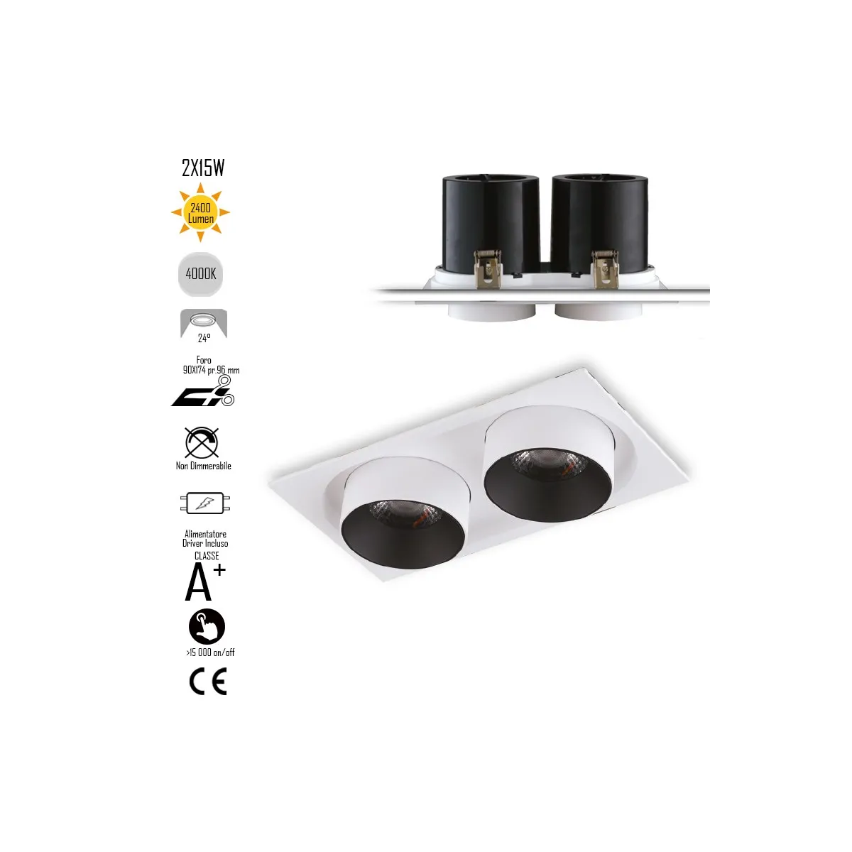 Encastré Outsider Amovible Et Réglable Led 2X15W 2400Lm 4000K 24 Driver Inclus INC-OUTSIDER-2X15M Spot encastré Blanc