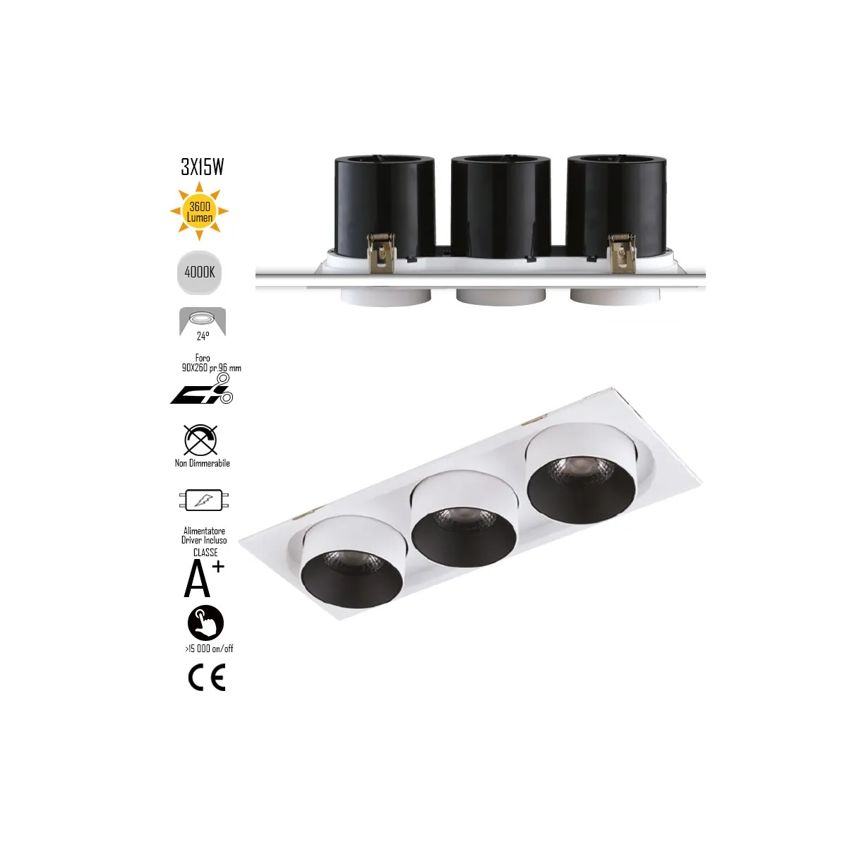 Encastré Outsider Amovible Et Réglable Led 3X15W 3600Lm 4000K 24 Driver Inclus INC-OUTSIDER-3X15M Spot encastré Blanc