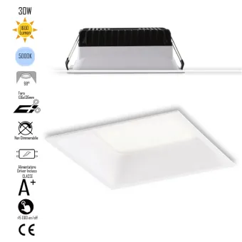 Plafonnier encastrable Faro quadro avec LED intégrée, double isolation, installation au plafond ou au mur.Non dimmable.Driver inclus.